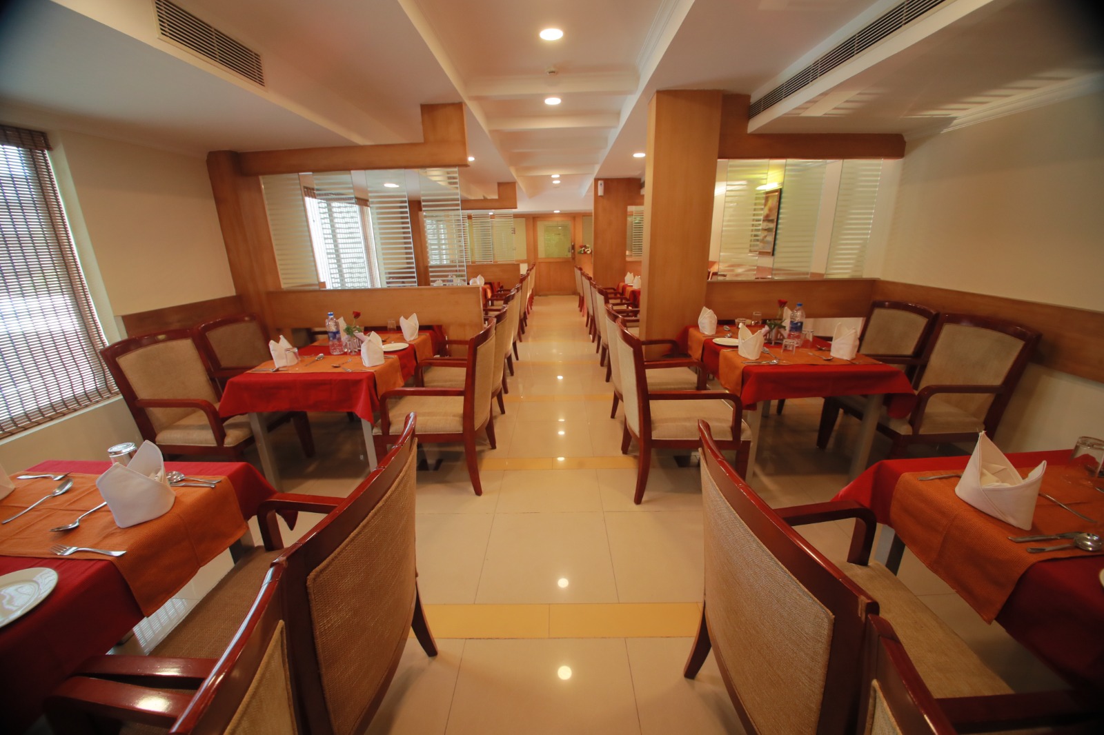 Located at the heart of town easy to reach, neat and clean ambience,rooms very clean and comfortable, food very tasty,staff and management very polite...
